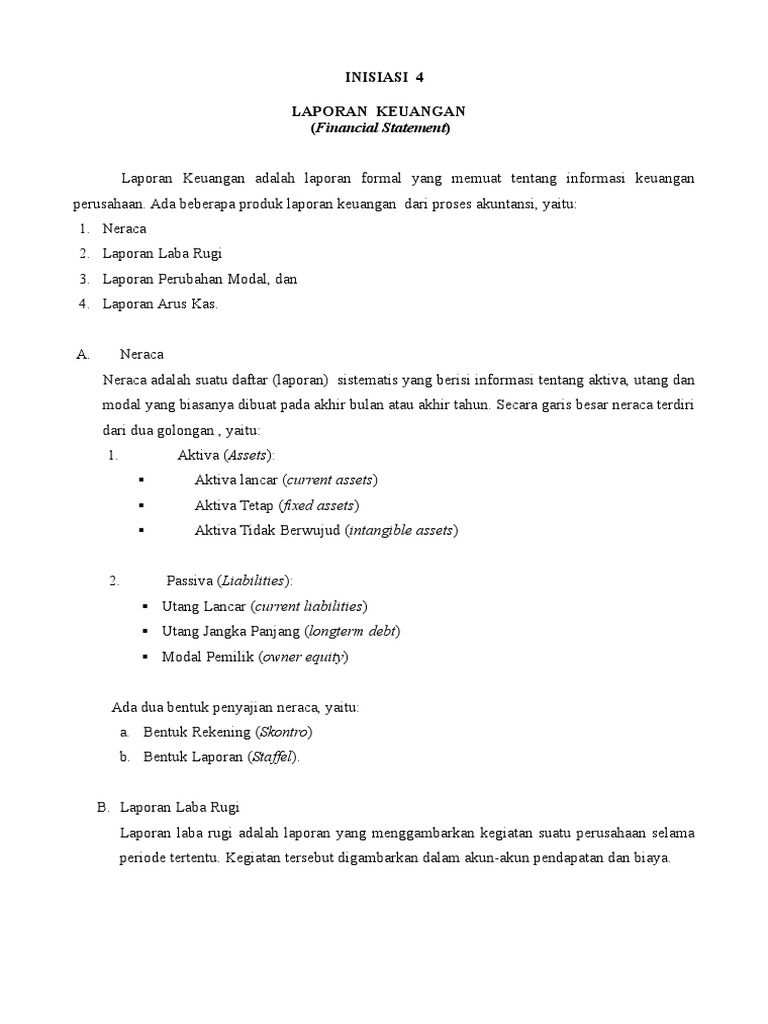 Pengertian Neraca2222 Docx Document from cdn.cupdf.com Laporan laba rugi adalah laporan yang menunjukan laba atau rugi bersih yang diperoleh perusahaan dalam periode waktu tertentu, misalnya 1 unsur laporan laba rugi. Ada penyusunannya, laporan laba rugi dilakukan dengan mengutip saldo akun nominal yang berada pada kolom laba rugi pada neraca jalur. Laporan neraca perusahaan jasa terdiri dari Skontro (account form) dan stafel (report form). Laporan laba rugi adalah laporan keuangan suatu perusahaan yang mengukur keuntungan atau kerugian suatu perusahaan dalam periode waktu tertentu. Laporan laba rugi merupakan salah satu bentuk dari jenis laporan keuangan pada suatu perusahaan. Dengan laporan laba rugi, maka kita dapat menilai efisiensi perusahaan berdasarkan nilai usaha. Laporan laba rugi merupakan laporan yang dibutuhkan dalam setiap perusahaan, baik itu perusahaan dagang atau pun manufaktur.
